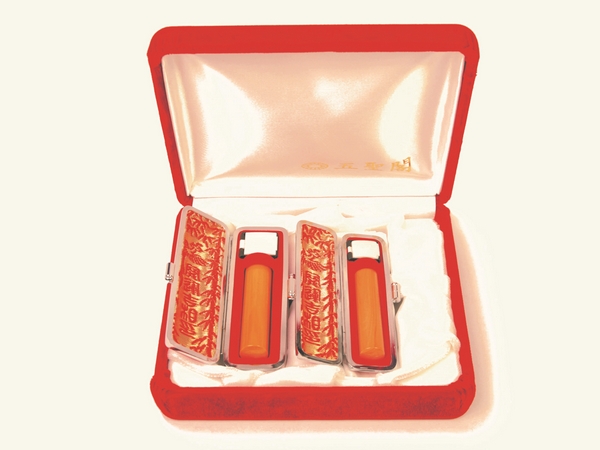 銀行印の印鑑ケース内蓋にお名前をプリントいたします。赤色の文字、書体は既定のものになります。