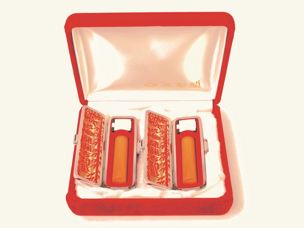 銀行印の印鑑ケース内蓋にお名前をプリントいたします。男性は黒色の文字、女性は赤色の文字、書体は既定のものになります。